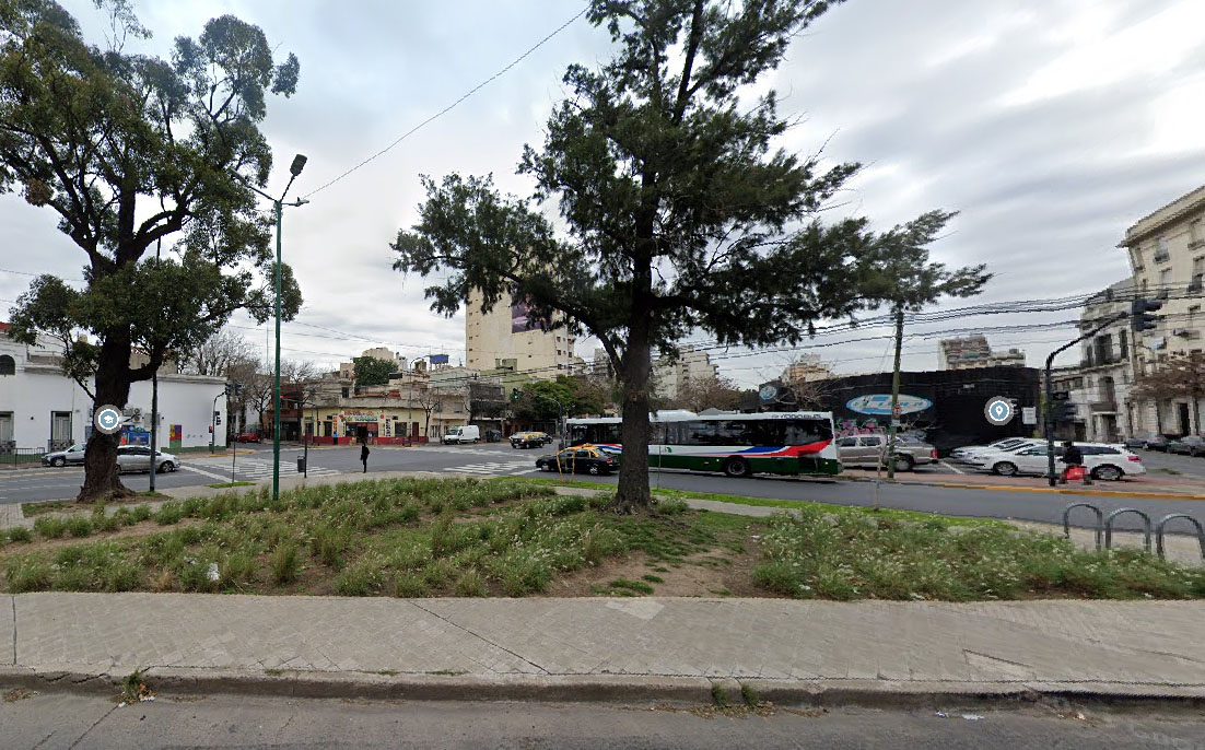 Colectivos y vehículos particulares pasan velozmente junto a sus lados y vértices. Tanto por Solís como por las dos secciones de Juan de Garay, el tránsito tiene una fuerte intensidad, que los semáforos sirven para atenuar. Entretanto, en el rinconcito urbano en cuestión, un par de árboles se erigen como custodios de la geografía barrial, ofreciendo algo de sombra, seguramente muy valorada en los veranos gobernador por el calor del cemento. Algunas plantas silvestres y una estructura para enganchar bicicletas, como se observa en la segunda de las imágenes entregadas por la herramienta de Google, completan el panorama del rincón urbano, en esta populosa zona del sur porteño.